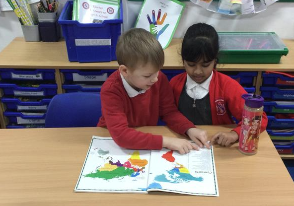 In Year 2 - the children enjoyed using an atlas to locate Norton Fitzwarren and the UK.