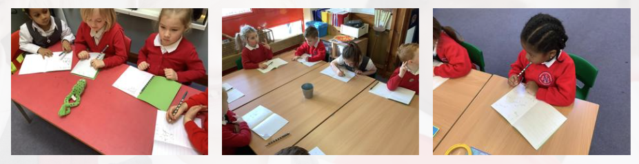 In reception, the children begin to learn how to write letters. When teaching children to write letters we follow the RWI handwriting rhymes. Each letter has a picture and rhyme that goes with it to help us to learn how to write it.
