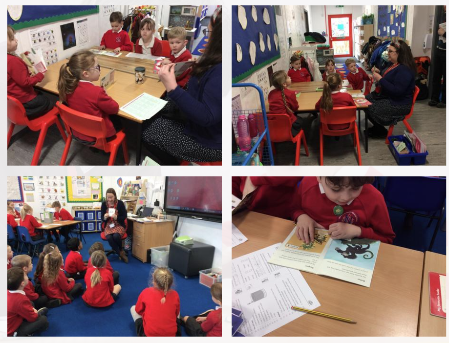Through a combination of whole class and group sessions children work through a series of tasks which will develop their understanding of different types of reading skill.